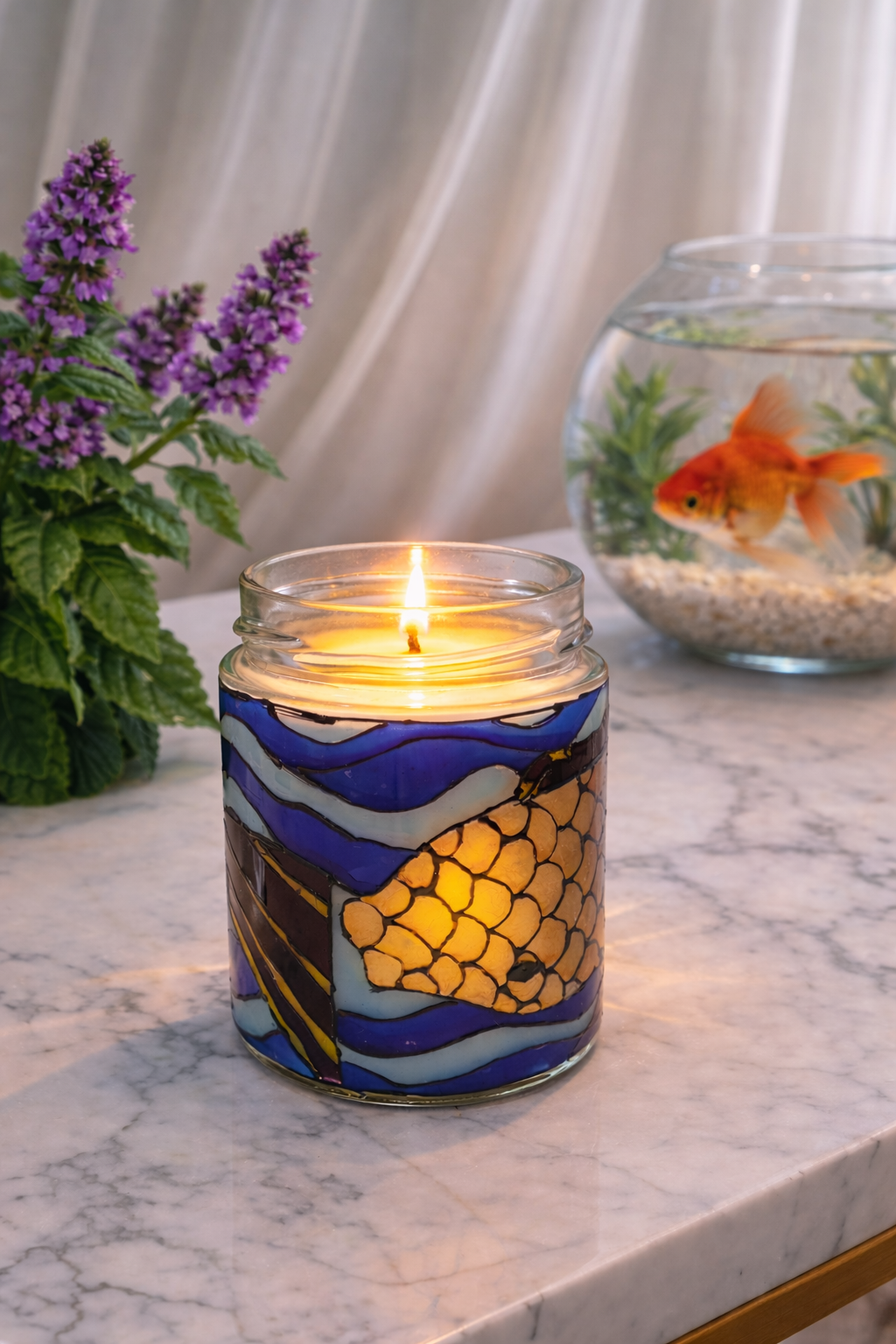Lumânare artizanală din ceară de soia – Peste Auriu
