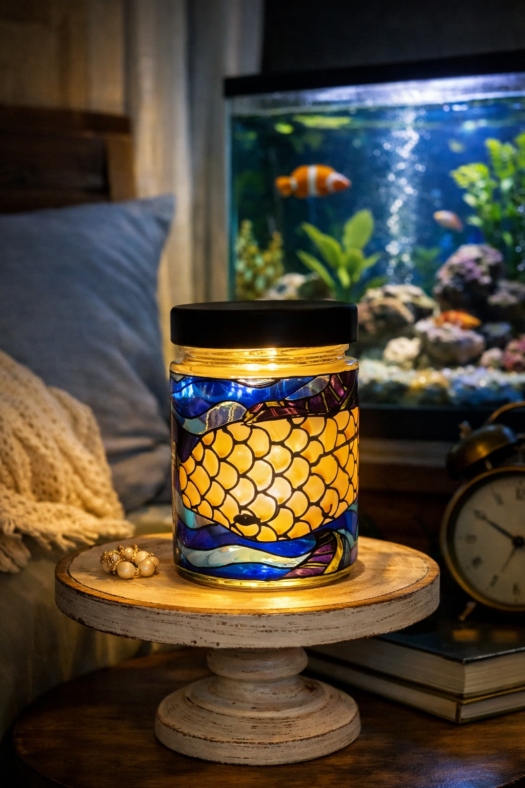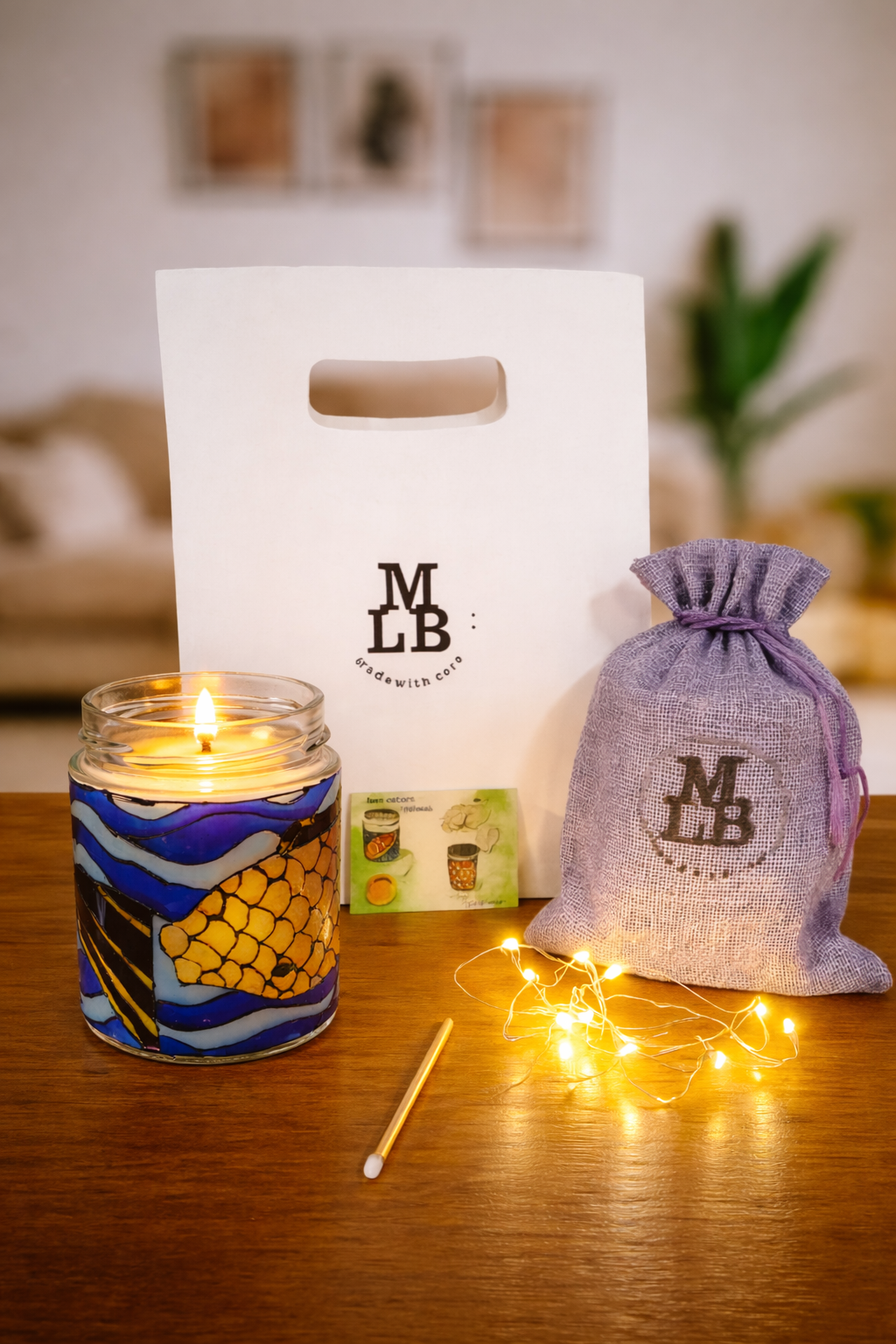 După consumarea cerii, borcanul nu se aruncă — devine o lampă ambientală colorată, folosind setul de lumini inclus.