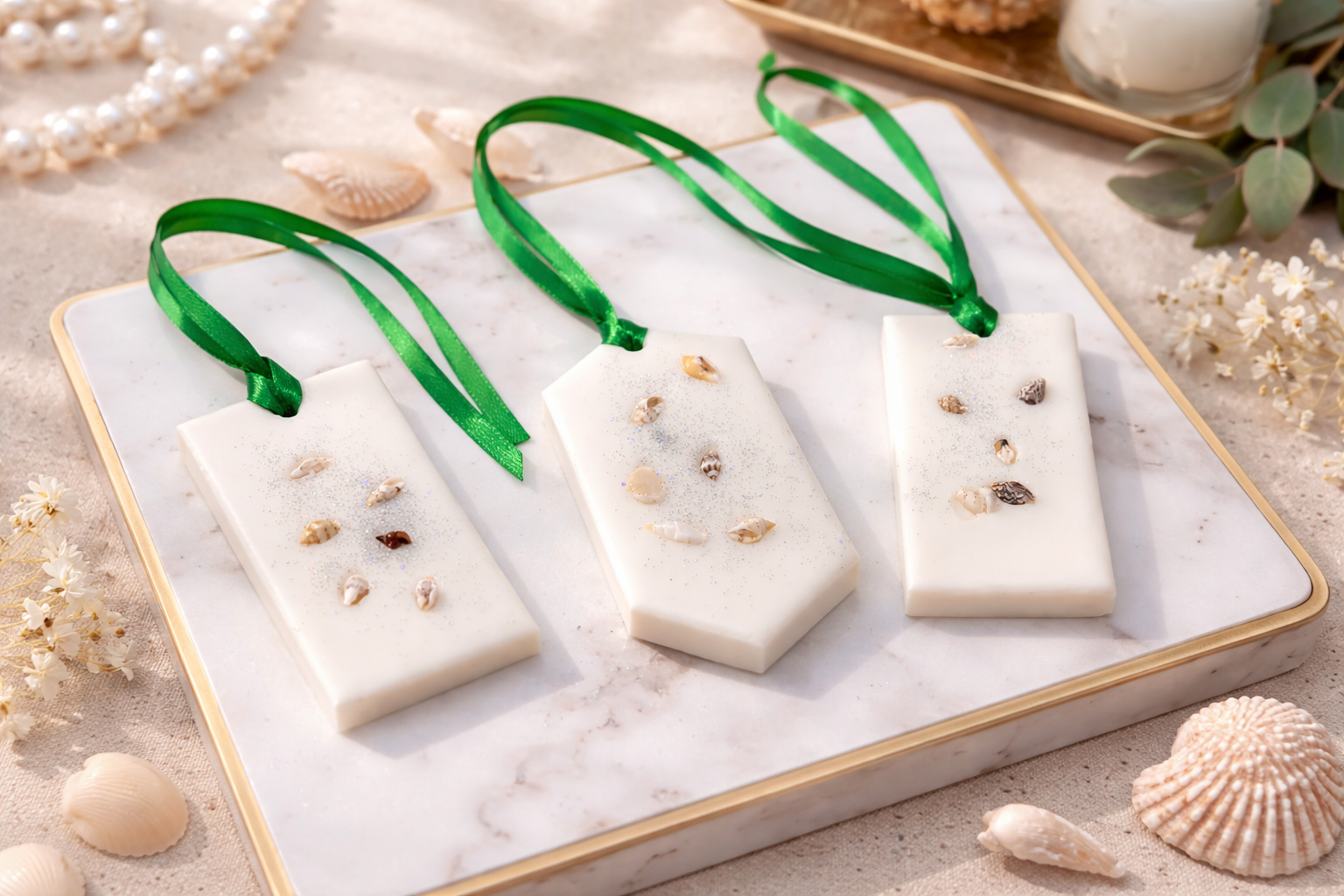 Fiecare tabletă este turnată și decorată manual, astfel poziționarea scoicilor și a decorului diferă — aceasta nu este o imperfecțiune, ci farmecul unui produs autentic, unic pentru tine.